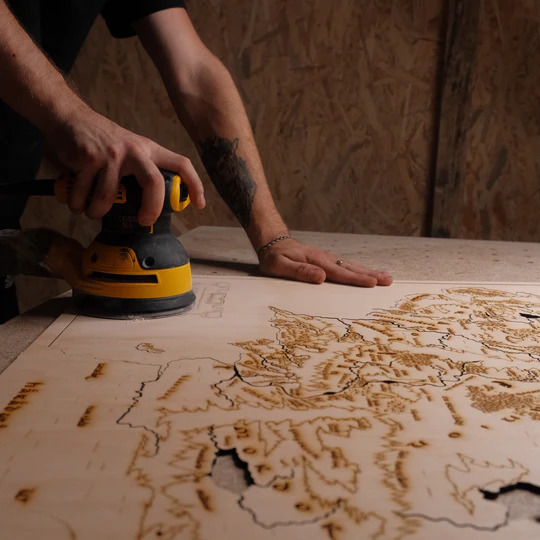 Lazer kesim işleminin ardından, her parça kenarların pürüzsüz hale getirilmesi ve yüzeyin renklendirme için hazırlanması amacıyla detaylı bir zımparalama işleminden geçer.