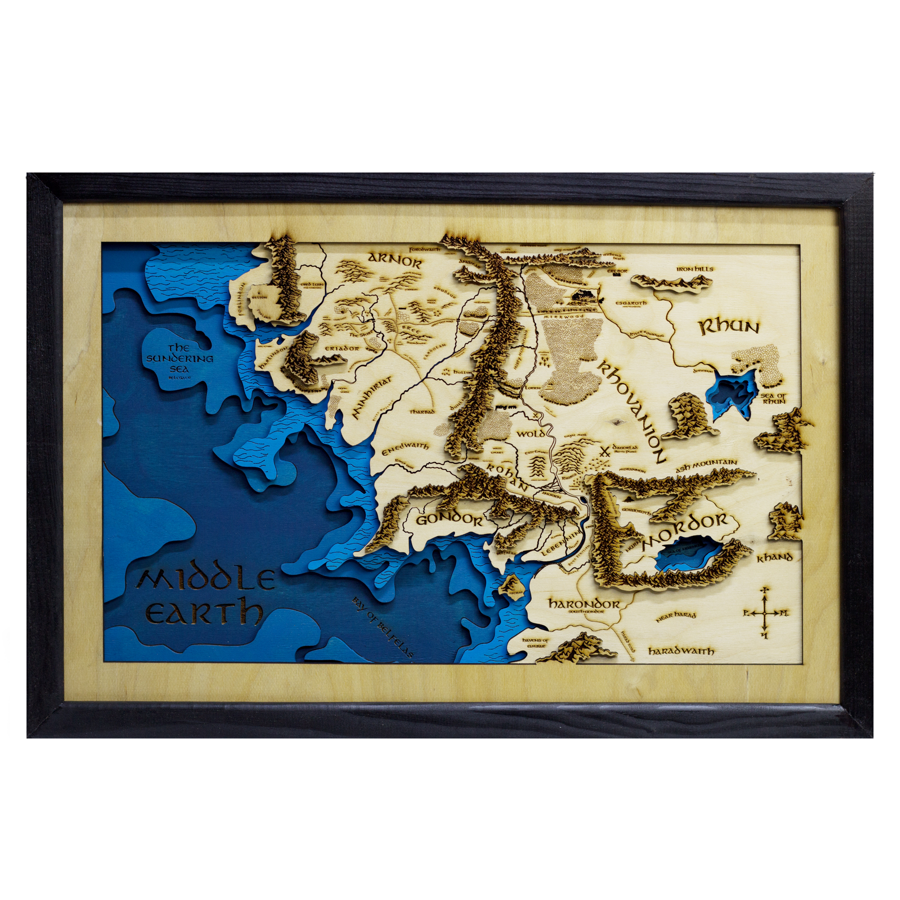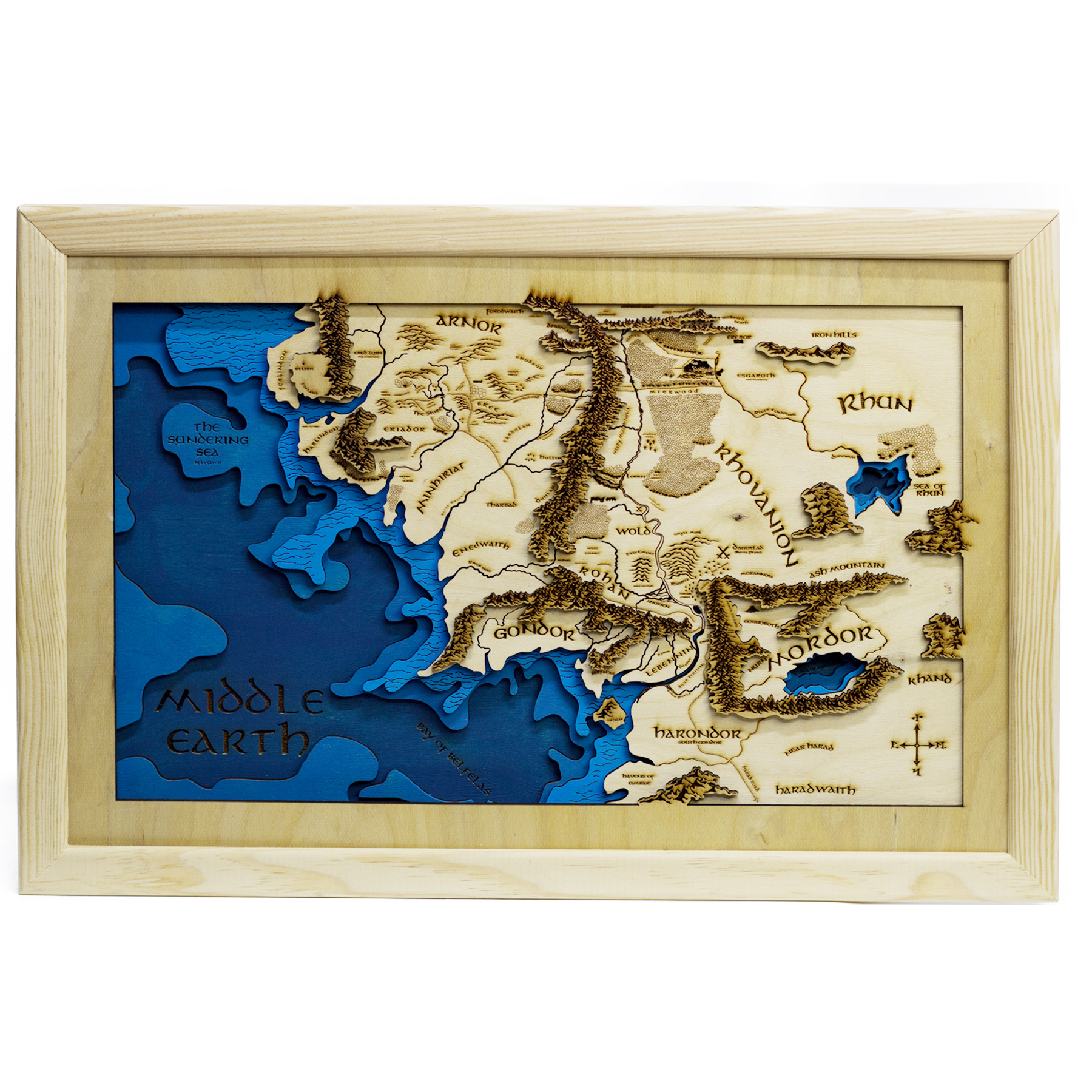 Ahşap Orta Dünya Haritası – 3D Yüzüklerin Efendisi Shadow Tasarım